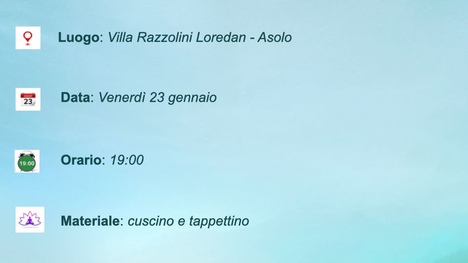 Se sei interessato a provare la tecnica ti aspetto Venerdì 23 Gennaio 2026 alle ore 19:00 presso Villa Razzolini Loredan ad Asolo!